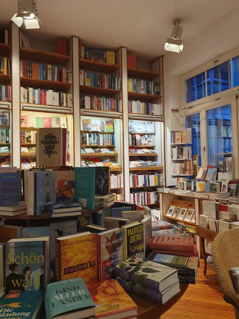 Wir sind eine kleine, feine Buchhandlung, die seit 1985 besteht und ganz in der Nähe des Schweizer Platzes, idyllisch im Hinterhof der Diesterwegstraße 7 gelegen ist, in direkter Nachbarschaft zum gleichnamigen Café.